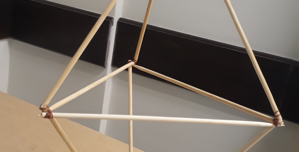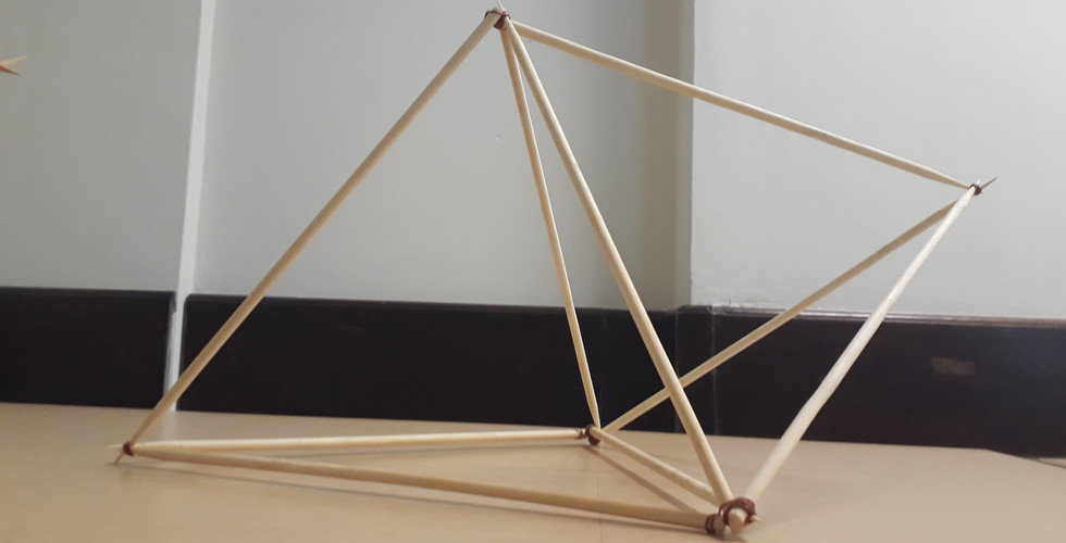 Primero, elaborar pirámides de base triangular, las cuales se realizaban uniendo las puntas de los palillos con las bandas.